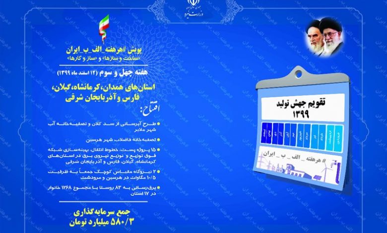 20 پروژه صنعت آب و برق در 6 استان کشور با سرمایهگذاری 580.3 میلیارد تومان با حضور وزیر نیرو و در قالب چهل و سومین هفته پویش #هرهفته_الف_ب_ایران به بهرهبرداری رسید.