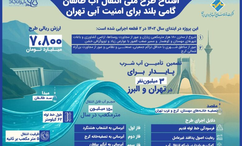 اینفوگرافیک: افتتاح طرح ملی انتقال آب از طالقان به استان های البرز و تهران گامی بلند برای امنیت آبی تهران