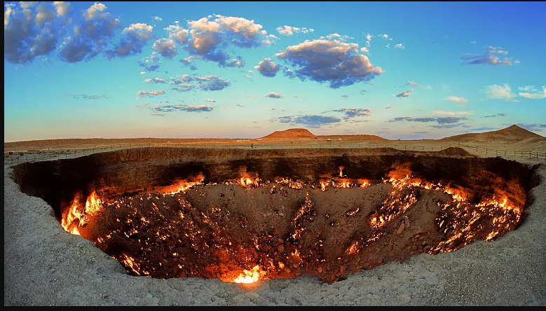 دهانه یا گودال عظیم گازی در استان آخال ترکمنستان موسوم به «دروازه های جهنم» از جمله مراکز تولید و انتشار متان در این کشور است که به عنوان یکی از نمادهای این فاجعه زیست محیطی مشهور شده است.
