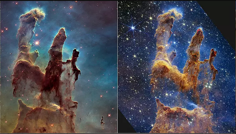 تلسکوپ فضایی جیمز وب ناسا تصاویری با جزئیات بسیار بالا از منظره موسوم به ستونهای آفرینش (Pillars of Creation) را ثبت کرد. در این تصویر ستارگان جدیدی از میان ابرهای متراکم گاز و غبار در حال شکل گیری هستند.