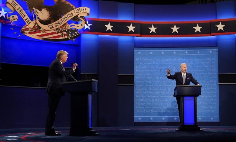 به گزارش «انرژی امروز» از یورونیوز، در این مناظره انتخاباتی موضوعاتی نظیر جایگزین قاضی درگذشته دیوان عالی آمریکا، روث بیدر گینزبرگ، بیمه حفاظت از بیمار و مراقبت مقرونبهصرفه (اوباما کر)، بحران شیوع کرونا و تاثیر اقتصادی آن و واکسن کووید ۱۹، بحران تبعیض نژادی، اظهارنامه مالیاتی دونالد ترامپ، تغییرات اقلیمی و پذیرش نتیجه انتخابات ۲۰۲۰ به برخورد شدید دو نامزد انتخاباتی منجر شد.