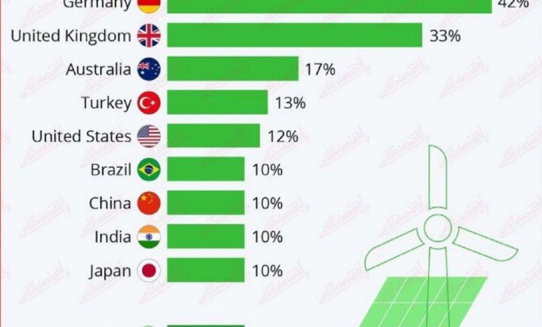 سهم انرژی خورشیدی و بادی در تولید برق کشورهای جهان