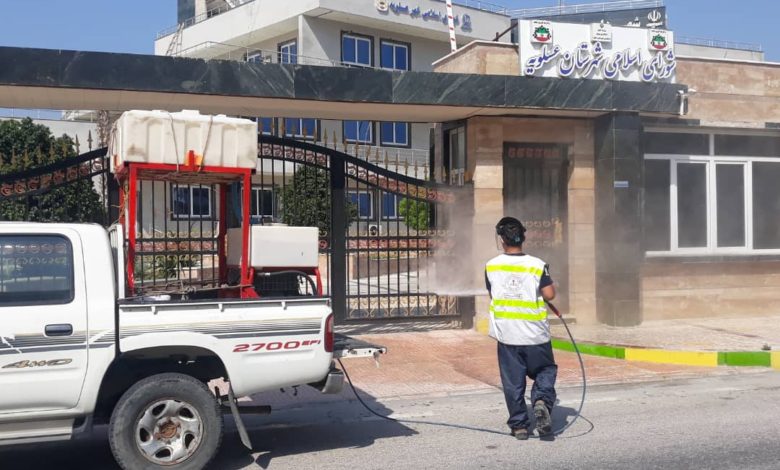 ضدعفونی معابر شهری عسلویه و نخل تقی برای مقابله با کرونا