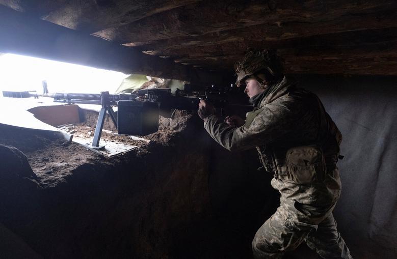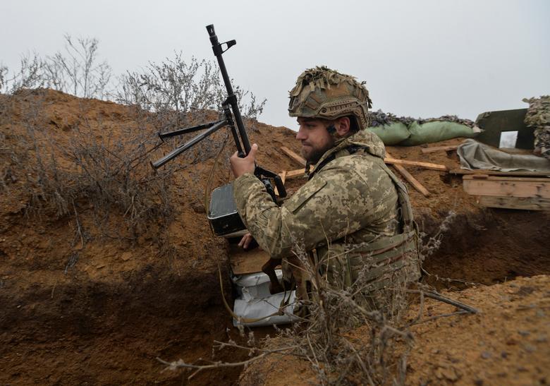 A Ukrainian serviceman is seen on the front line near the village of Travneve in Donetsk region, Ukraine, December 15, 2021. REUTERS/Gleb Garanich