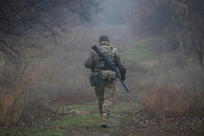 A Ukrainian serviceman is seen on the front line near Travneve in Donetsk region, Ukraine, December 15, 2021. REUTERS/Gleb Garanich