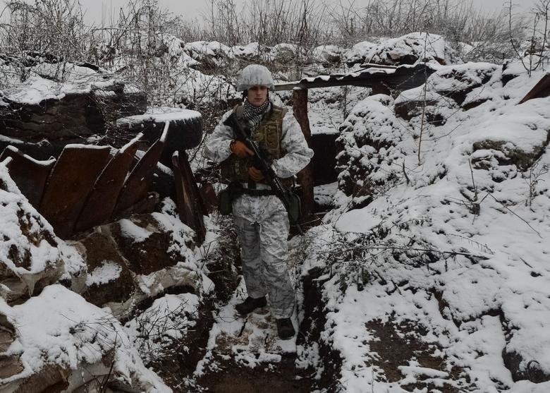 A Ukrainian serviceman is seen on the front line near the village of Travneve in Donetsk region, Ukraine, December 15, 2021. Picture taken December 15, 2021. REUTERS/Gleb Garanich