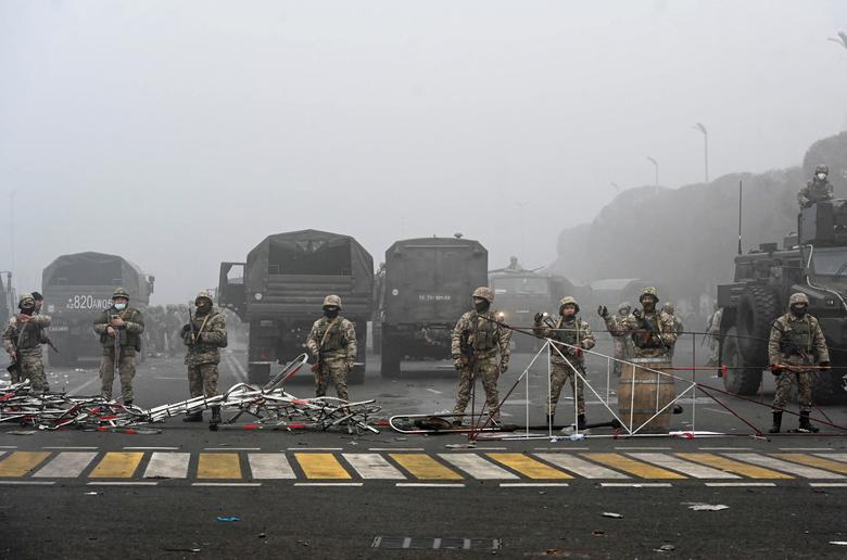 Troops are seen at the main square where hundreds of people were protesting against the government, after authorities’ decision to lift price caps on liquefied petroleum gas, in Almaty, Kazakhstan January 6, 2022. REUTERS/Mariya Gordeyeva