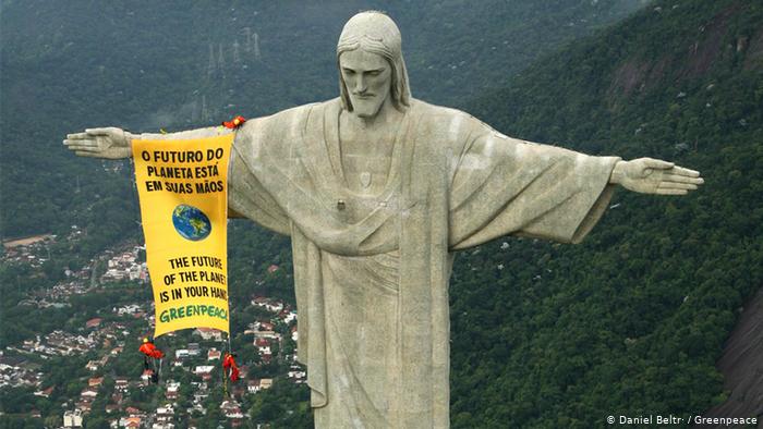 برای نگهداشت تنوع گونهها سال ۲۰۰۶: فعالان صلح سبز به مناسبت نشست سازمان ملل درباره تنوع گونهها، بنر بزرگی را از تندیس مسیح در ریودوژانیرو برزیل آویختند. بر روی این بنر نوشته شده بود: «آینده سیاره در دستان شماست». آنها نسبت به انقراض گونههای گیاهی و جانوری در اثر کشاورزی صنعتی هشدار میدادند.