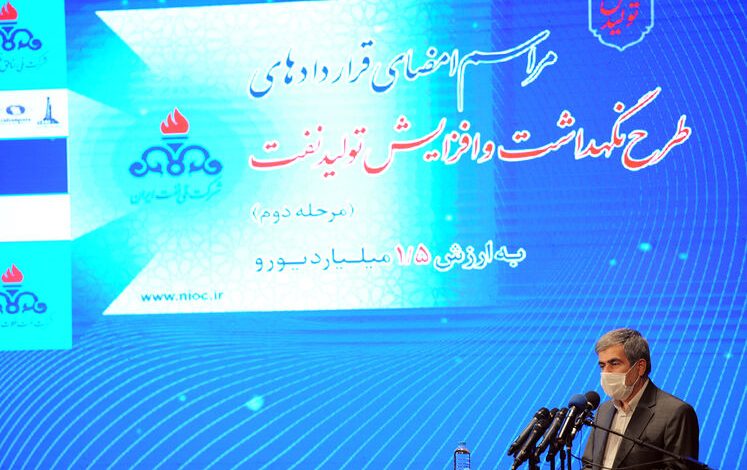 ۱۳ قرارداد طرح نگهداشت و افزایش تولید نفت، صبح امروز (دوشنبه، ۲۷ مردادماه) بین دو شرکت نفت فلات قاره ایران و ملی مناطق نفتخیز جنوب (کارفرما) با ۱۴ شرکت ایرانی (پیمانکار) امضا شد. ارزش مجموع این قراردادها بیش از یک میلیارد و ۵۲۷ میلیون یورو اعلام شده است و با اجرای این قراردادها، حدود ۱۸۵ هزار بشکه به ظرفیت تولید نفت کشور افزوده میشود./شانا