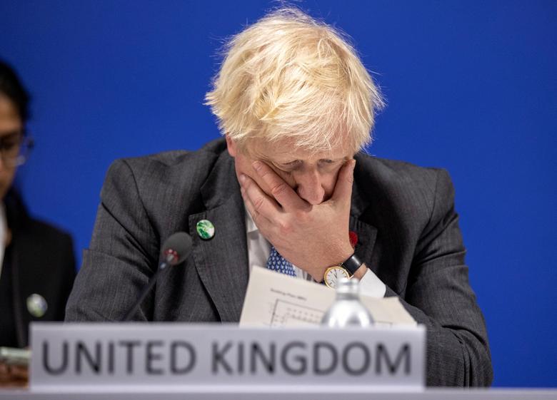 Britain’s Prime Minister Boris Johnson looks on as he prepares to receive attendees during the UN Climate Change Conference, November 1. Christopher Furlong/Pool