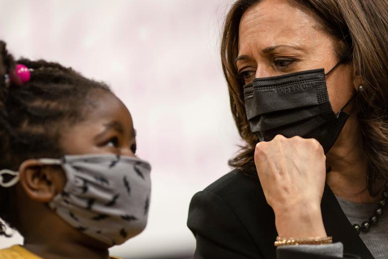 U.S. Vice President Kamala Harris visits a classroom at the West Haven Child Development Center, in West Haven, Connecticut, U.S. March 26, 2021. REUTERS/Carlos Barria