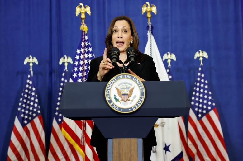 U.S. Vice President Kamala Harris speaks during an event at the White House in Washington, June 23, 2021. REUTERS/Kevin Lamarque