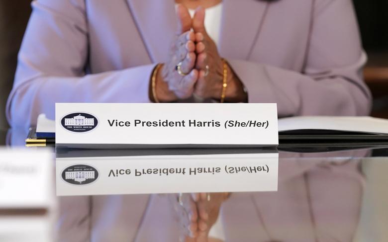 U.S. Vice President Kamala Harris, hosts a conversation with LGBTQ stakeholders marking Pride Month at the White House in Washington, June 23, 2021. REUTERS/Kevin Lamarque