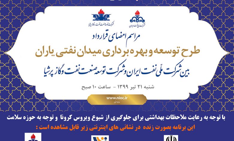 مراسم امضای قرارداد طرح توسعه میدان نفتی یاران به صورت زنده پخش می شود.