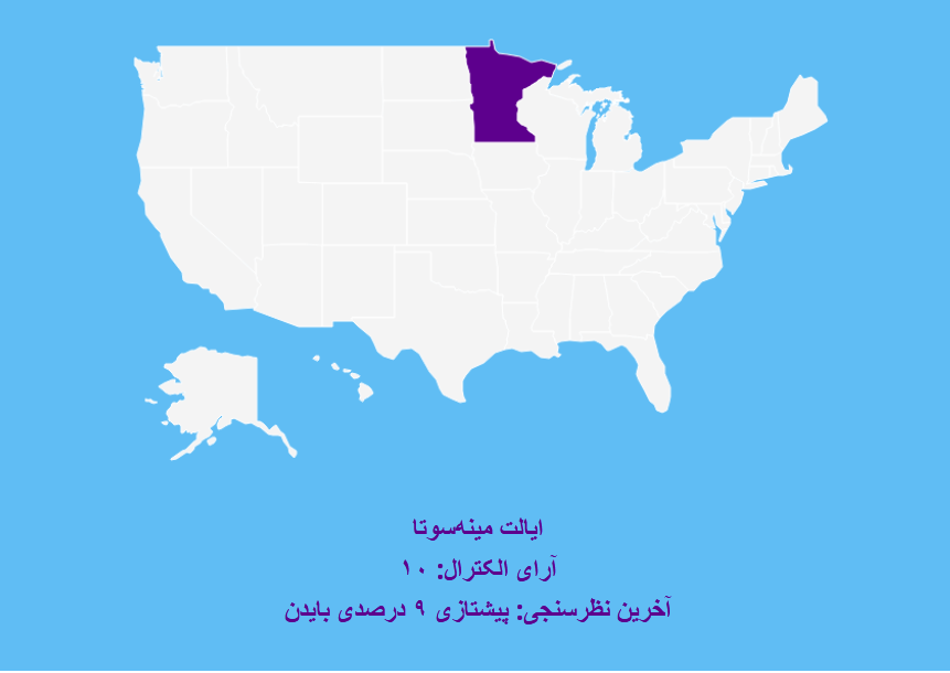 پیروزی دونالد ترامپ در مینه سوتا در شب انتخابات پیش رو بی شک نه تنها یک شگفتی خواهد بود بلکه می تواند نشاندهنده روندی عمومی از اقبال به چهل و پنجمین رئیس جمهوری آمریکا در سایر ایالت های غرب میانه نیز باشد. با این وجود در حالی که کمتر از سه هفته به برگزاری انتخابات باقی مانده است جو بایدن به وضوح بخت بیشتری برای کسب ۱۰ رای الکترال ایالت مینه سوتا دارد.