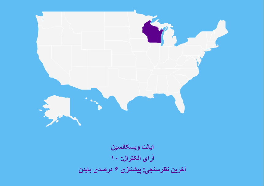 موج اخیر شیوع ویروس کرونا در ویسکانسین احتمالا چندان به تغییر نظر رای دهندگان در این ایالت کمک نخواهد کرد. نتیجه آخرین نظرسنجی انجام شده نشان می دهد که جو بایدن با اختلاف شش درصدی از دونالد ترامپ پیش افتاده است. نامزد پیروز در ویسکانسین ۱۰ رای الکترال این ایالت را به دست خواهد آورد.