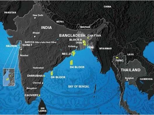 بلوک گازی KG-D۶ در حوضه گازی «کریشنا-گوداواری» خلیج بنگال واقع است. این بلوک گازی در ناحیهای به وسعت ۸ هزار و ۱۰۰ کیلومترمربع واقع است. گزارش منابع صنعت گاز حاکی است که انتظار میرود تولید گاز از این میدان تا پایان سال آینده به حدود ۹/ ۱۲ میلیون متر مکعب در روز برسد.