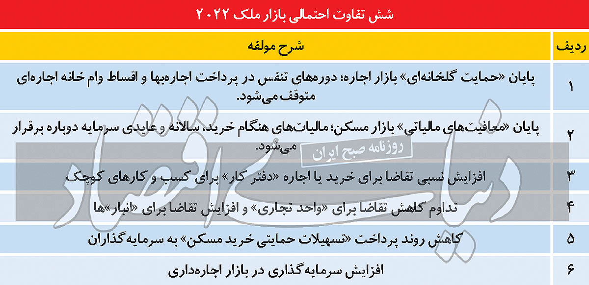 محتوای بررسیهایی که در این گزارش انجام شده، حاکی است: در سالجاری میلادی به خاطر عبور از موجهای بحرانساز کرونا –تحتتاثیر واکسیناسیون- و همچنین بازگشت نبض تولید به اقتصاد کشورهای مختلف، «معافیتهایی که طی 2020 و 2021 برای مالکان و بهرهبرداران از واحدهای مسکونی» اعمال شد متوقف میشود.