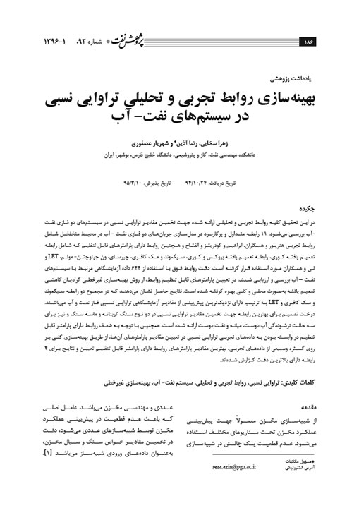 بهینهسازی روابط تجربی و تحلیلی تراوایی نسبی در سیستمهای نفت– آب