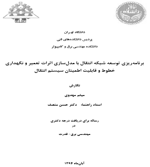 برنامه ریزی توسعه شبکه انتقال با مدلسازی اثرات تعمیر و نگهداری خطوط، تولیدات پراکنده و قابلیت اطمینان سیستم انتقال