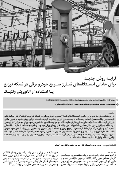 ارائه روش جدید برای جایابی ایستگاه های شارژ سریع خودرو برقی در شبکه توزیع با استفاده از الگوریتم ژنتیک