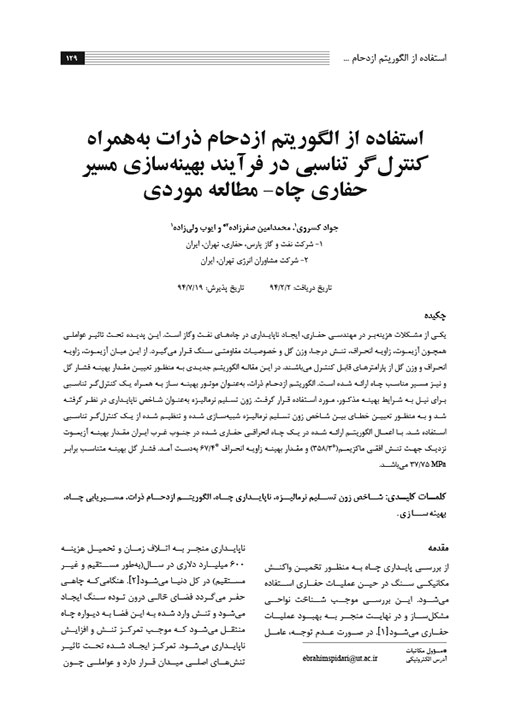 استفاده از الگوریتم ازدحام ذرات بههمراه کنترلگر تناسبی در فرآیند بهینهسازی مسیر حفاری چاه