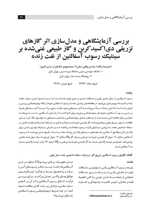بررسی آزمایشگاهی و مدلسازی اثر گازهای تزریقی دی اکسیدکربن و گاز طبیعی غنی شده بر سینتیک رسوب آسفالتین از نفت زنده