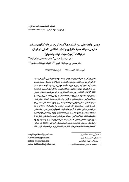 از این رو در مطالعه حاضر به بررسی رابطه علی بین انتشار دی اکسیدکربن (به عنوان متغیر جایگزین برای تخریب محیط زیست) و متغیرهای سرمایه گذاری مستقیم خارجی، سرانه مصرف انرژی و تولید ناخالص داخلی در قالب فرضیه ی زیست محیطی کوزنتس در ایران در سالهای 1387-1359 پرداخته میشود. برای این منظور از آزمون های تودا- یاماموتو برای بررسی رابطه علی استفاده شده است.