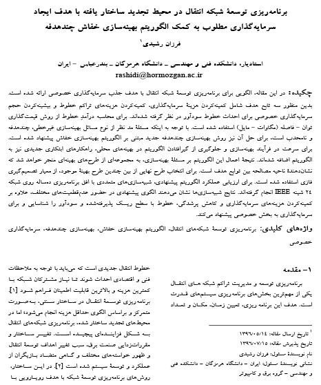برنامه ریزی توسعه شبکه انتقال در محیط تجدید ساختار یافته با هدف ایجاد سرمایه گذاری مطلوب به کمک الگوریتم بهینه سازی خفاش چندهدفه