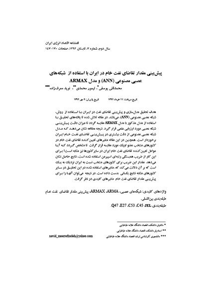 پیشبینی مقدار تقاضای نفت خام در ایران با استفاده از شبکههای عصبی مصنوعی (ANN) و مدل ARMAX