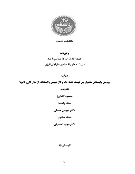 بررسی وابستگی متقابل بین قیمت نفت خام و گاز طبیعی با استفاده از مدل کاپولا گارچ