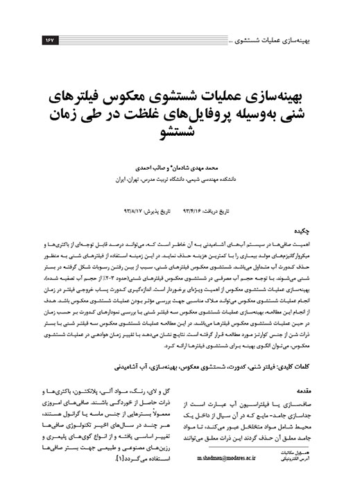 بهینهسازی عملیات شستشوی معکوس فیلترهای شنی بهوسیله پروفایلهای غلظت در طی زمان شستشو