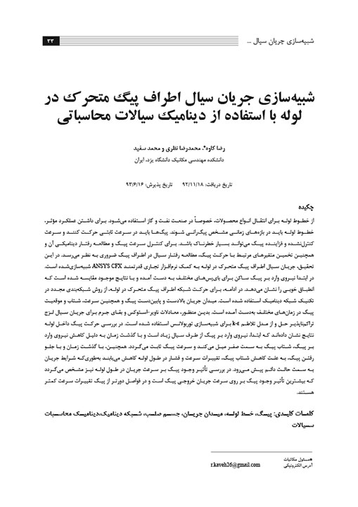 شبیهسازی جریان سیال اطراف پیگ متحرک در لوله با استفاده از دینامیک سیالات محاسباتی