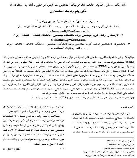 ارائه یک روش جدید حذف هارمونیک انتخابی در اینورتر منبع ولتاژ با استفاده از الگوریتم رقابت استعماری