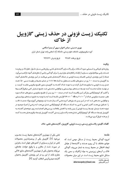 تکنیک زیست فزونی در حذف زیستی گازوییل از خاک