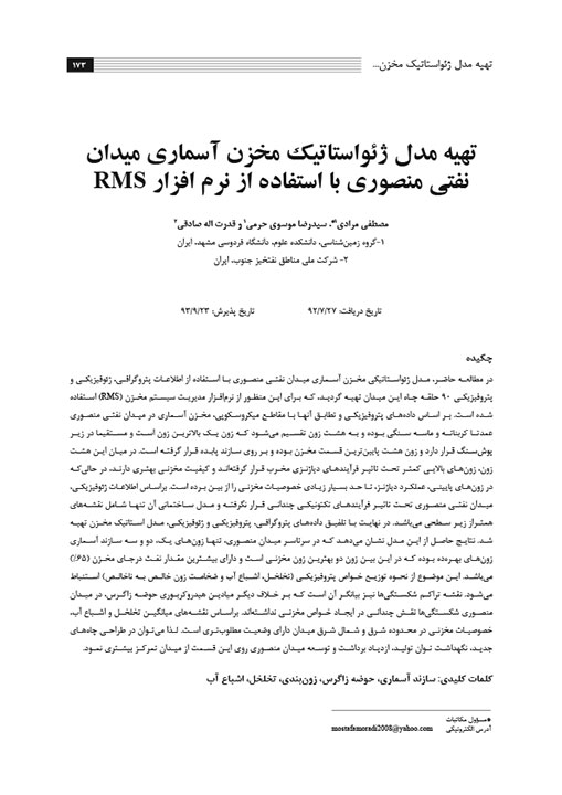 تهیه مدل ژئواستاتیک مخزن آسماری میدان نفتی منصوری با استفاده از نرم افزار RMS