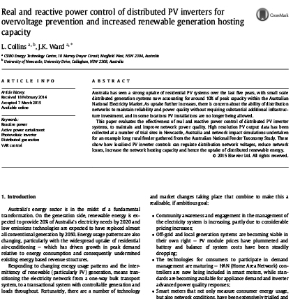 این مقاله به ارزیابی اثربخشی کنترل قدرت واقعی و واکنشی، سیستم های اینورتر PV توزیع شده، برای مدیریت مشکلات مربوط به افزایش ولتاژ شبکه در حین اجتناب از انقطاع بیش از حد ظرفیت بالقوه تولید خورشیدی می پردازد. داده های مربوط به تولید PV با وضوح بالا، بار مشتری و ولتاژ شبکه در تعدادی از سایت های آزمایشی در نیوکاسل، استرالیا گردآوری شده و مبنایی را برای مدل های شبیه سازی مورد استفاده فراهم می آورد. شبیه سازی های تاثیر شبکه هم بر روی یک مساله نمونه کوچک و هم برای یک تغذیه کننده روستایی طولانی مدت حاصل از مطالعه رده بندی تغذیه کننده ملی استرالیا انجام پذیرفتند. برای توابع کیفیت قدرت معین اسمی var – volte و ولت – وات، هفت پیاده سازی مختلف توصیف گشته و مورد بررسی قرار گرفتند. این امر به دلیل استفاده (یا عدم استفاده) از تابع قدرت واکنشی و تیمــــارهای مختلف تعامل این توابع کیفیت قدرت با محدودیت های قدرت ظاهری اینورتر و انتخاب هر کدام از منابع پاسخ به شرایط عملیاتی جاری و یا به رتبــــه بندی مجاز اینورتر می باشد.