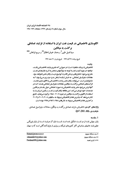 الگوسازی نااطمینانی در قیمت نفت ایران با استفاده از فرایند تصادفی برگشت به میانگین