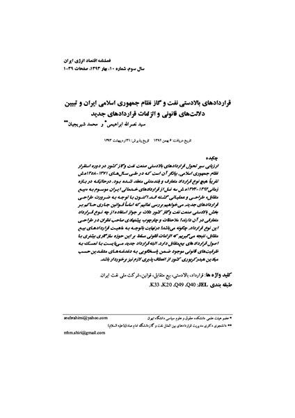 قراردادهای بالادستی نفت و گاز نظام جمهوری اسلامی ایران و تبیین دلالتهای قانونی و الزامات قراردادهای جدید