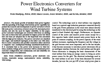 این مقاله یک دیدگاه نسبت به مبدل های مختلف الکترونیک قدرت را در WTS ها با توجه زیاد به ساختار های مختلف ممکن در ولتاژ پایین و متوسط به دست میدهد. یک ویژگی مهم این است که این ساختار ها در حال حرکت به سمت سطوح بالاتر ولتاژ هستند ، و این که این موضوع موجب حرمت به سمت ساختار های چند سطحی تک سلولی و چند سلولی میشود اجتناب ناپذیر است و میتواند حتی از ماژول های مبدل توان با ولتاژ پایین نیز استفاده کند. یکی از نگرانی های فعلی فراتر از افزایش توان ، توانایی پیش بینی قابلیت اعتماد سیستم ها و کنترل آن ها است زیرا یکی از شکست ها و علل آن ها در WTS همین مبدل ها هستند ، و پیش بینی طول عمر و نظارت بر شرایط آن ها در آینده برای بهبود این فناوری بسیار مهم است.