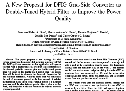 طرح پیشنهادی جدید برای مبدل سمت شبکه DFIG به عنوان فیلتر ترکیبی دوبار تنظیم شده جهت بهبود کیفیت برق