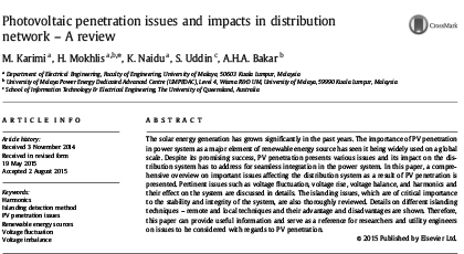 در این مقاله اثرات PV بعنوان یک RES روی شبکه ی توزیع و مووضعات نفوذ همراه با آن در سیستم های الکتریکی بطور کامل ارائه شدند. اهمیت PV بعنوان یک منبع مهم از توان و قابلیت تولیدش بعنوان مانعی در این تحقیق نشان داده شده است. اثر PV و مشکل اصلی همراه با سیستم توزیع مورد بررسی قرار گرفته است. موضوعات ولتاژ و هماهنگی در PV و ماهیت پیچیدگی ها که در سیستم مطرح می شوند بیشتر مورد بحث قرار می گیرند. استانداردها و راهنمایی ها برای تضمین عملکرد موفقیت آمیز سیستم PV نیز با توجه به ماهیت مشکلی که با آن روبرو ایم داده می شوند. تکنیک شناسایی مجزا سازی می تواند بطور گسترده ایی به دو گروه اصلی تقسیم شود؛ تکنیکهای داخلی و راه دور. در تکنیک های داخلی تکنیک شناسایی مجزا سازی برپایه ی توان شبکه است درحالیکه در تکنیک داخلی، شامل فعال و غیرفعال و هایبرید، تکنیک شناسایی مجزا سازی از سوی وارودن ساز PVاست. در تکنیک قبلی NDZ می تواند بطو رکامل از بین رود. در تکنیک آخر رویکرد غیرفعال برپایه ی سنجش پارامترهای سیستم است و رویکرد فعال برای ارزیابی مجزا سازی در سیستم درهم ریختگی ایجاد می نماید. تکنیک هایبرید از سوی دیگر هردو تکنیکهای فعال و غیرفعال را برای شناسایی دقیق مجزا سازی در سیستم یکی میکند. در نهایت نقاط قوت و ضعف هر روش بداده شده تا محققان عملی بودن روش را مورد بررسی قرار دهند.