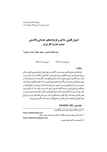 اصول قانونی حاکم بر قراردادهای خدماتی بالادستی صنعت نفت و گاز ایران