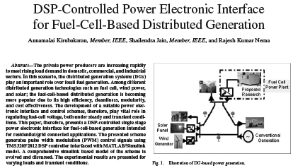 تولید کنندگان خصوصی توان، بسرعت در حال افزایش هستند تا افزایش تقاضای بار را در بخش های خانگی، تجاری، و صنعتی پاسخگو باشند. در اینجا، سیستم های تولید توزیع شده (DGها)، نقش مهمی را در تولید سوخت های فسیلی بازی می کنند. در میان تکنولوژی های مختلف تولید توزیع شده مانند پیل سوختی، توان بادی، و خورشیدی، تولید توزیع شده ی مبنی بر پیل سوختی به دلیل بازده بالای آن، پاک بودن، مدولار بودن، و فواید اقتصادی آن در حال مشهورتر شدن می باشد. بنابراین، توسعه یک رابط الکترونیک قدرت مناسب و طرح های کنترلی، نقش حیاتی در تنظیم ولتاژ پیل سوختی، هم تحت شرایط پایدار و هم تحت شرایط گذرا، ایفا می کند. ازینرو این مقاله یک رابط الکترونیک قدرت تک-مرحله ای DSP-کنترل شده را برای تولید مبنی بر پیل سوختی که برای کاربردهای مسکونی متصل به شبکه می باشد، ارایه می دهد. طرح ارایه شده، سیگنال های کنترلی مدولاسیون پهنای پالس (PWM) را با استفاده از کنترل کننده TMS٣٢٠F٢٨١٢ DSP که با مدل MATLAB Simulink مرتبط می شود، تولید می کند. یک مدل جامع مبنی بر شبیه سازی از طرح ارایه شده، استنتاج شده و مورد بحث قرار می گیرد. نتایج آزمایش به ازای بارهای متغیر و شرایط گذرا، ارایه می شوند.