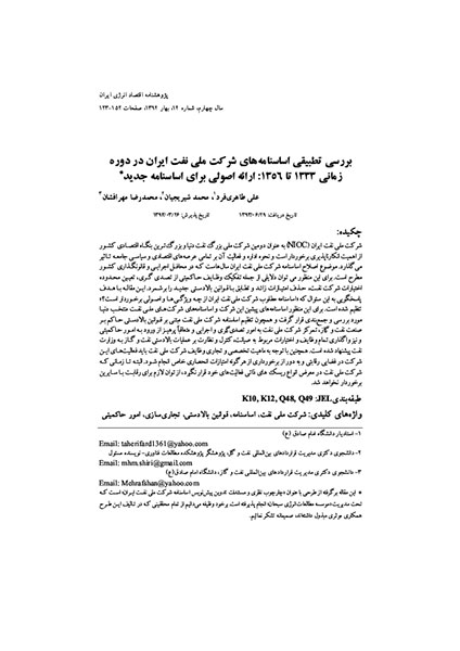 بررسی تطبیقی اساسنامههای شرکت ملی نفت ایران در دوره زمانی 1333 تا 1356: ارائه اصولی برای اساسنامه جدید