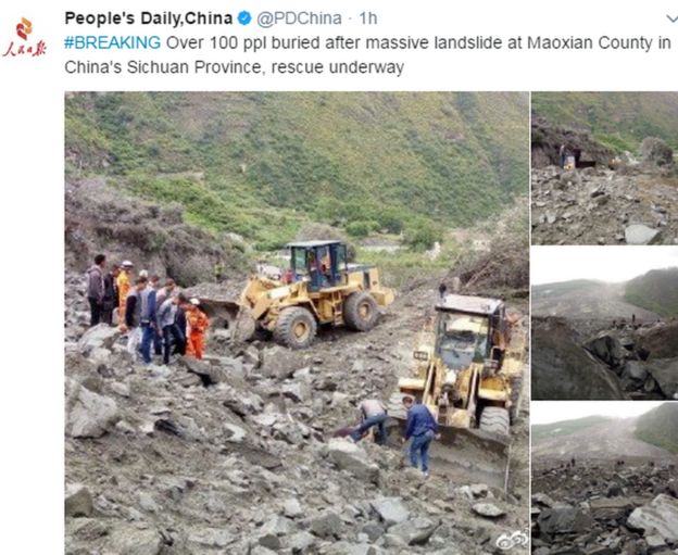 رانش زمین در چین ۱۰۰ مفقود داشت