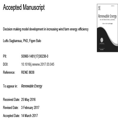 توسعه مدل تصمیم گیری در بهره وری از انرژی بادی افزایش یافته مزارع