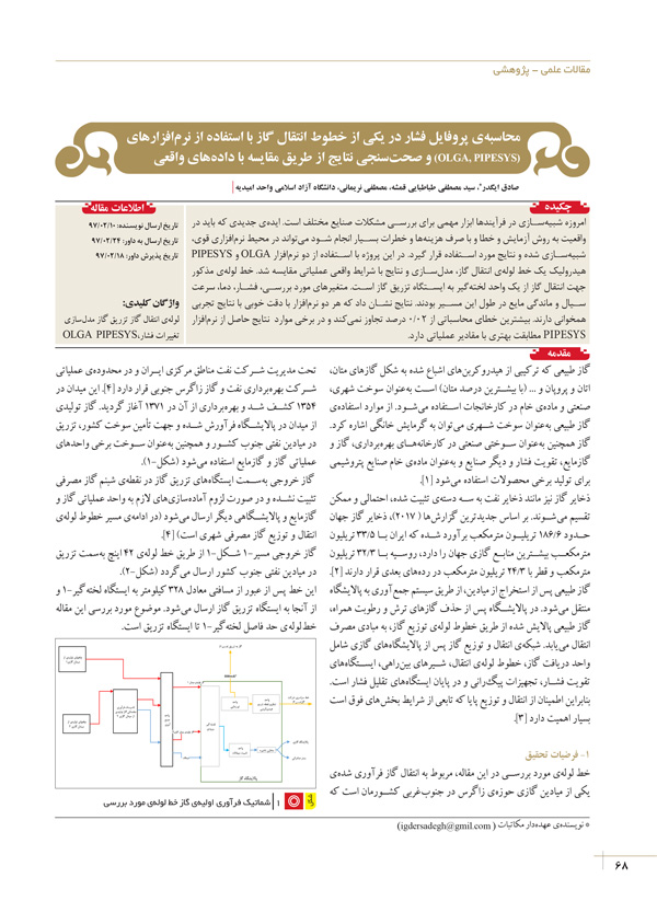 محاسبهی پروفایل فشار در یکی از خطوط انتقال گاز با استفاده از نرمافزارهای (OLGA. PIPESYS) و صحتسنجی نتایج از طریق مقایسه با دادههای واقعی