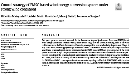 استراتژی کنترل سیستم تبدیل انرژی باد مبتنی بر PMSG تحت شرایط باد شدید