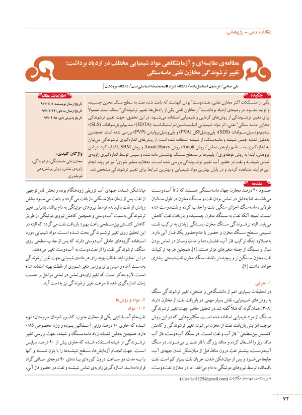 مطالعهی مقایسهای و آزمایشگاهی مواد شیمیایی مختلف در ازدیاد برداشت، تغییر ترشوندگی مخازن نفتی ماسهسنگی